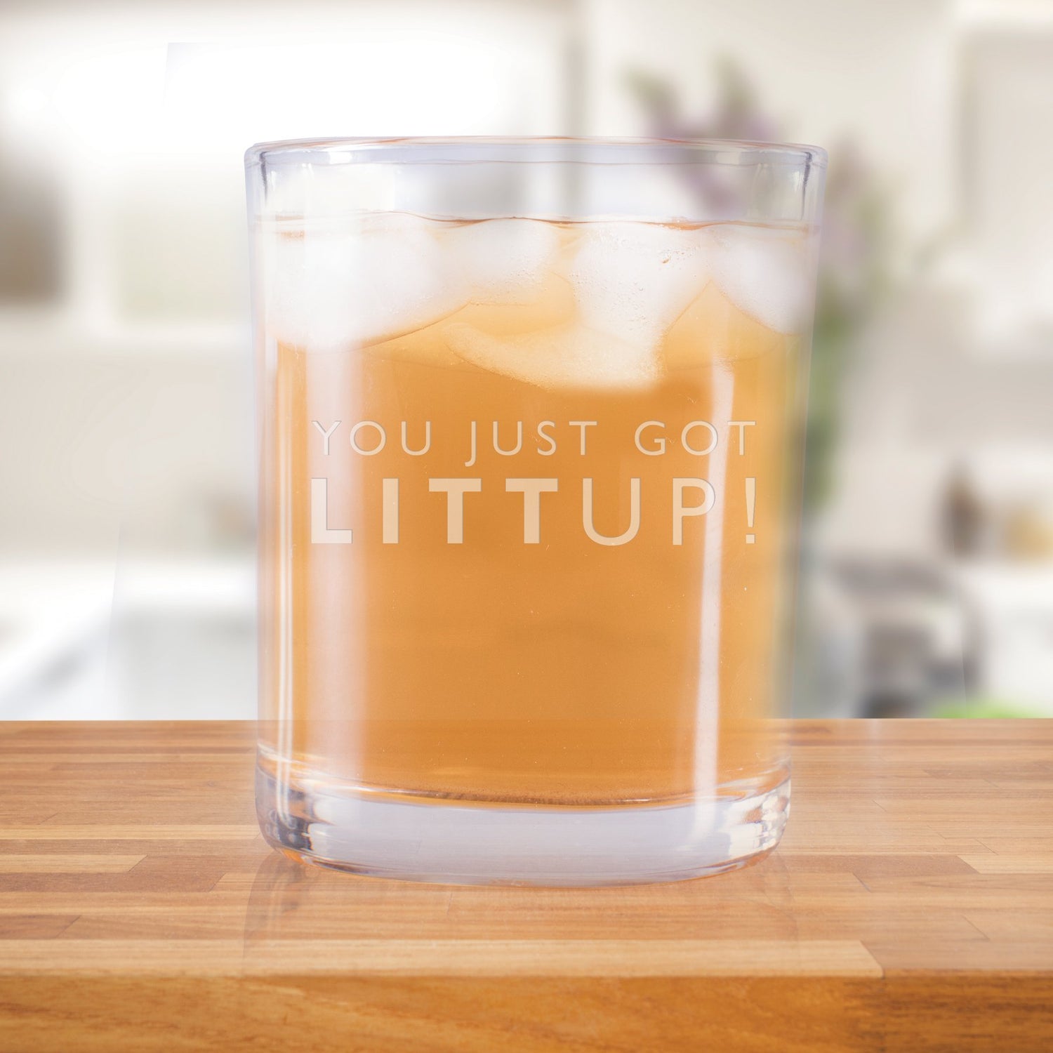 Say "Cheers" to Louis Litt and drink your favorite cocktail or liquor out of the Suits "You Just Got Litt Up" Rocks Glass. The 13 ounce glass features the famous phrase "You Just Got Litt Up" engraved on the front of the glass.