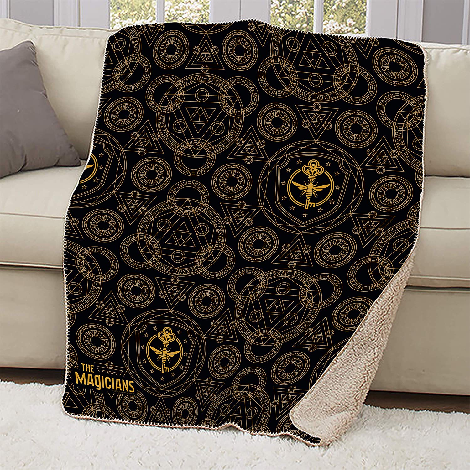 The Magicians Brakebills University Sherpa Blanket was made for snuggling up and watching your favorite magical show, The Magicians. The fuzzy, black and yellow blanket features the official Brakebills College for Magical Pedagogy logo on the front. This blanket is dangerously soft and makes the perfect gift for any fan of The Magicians!