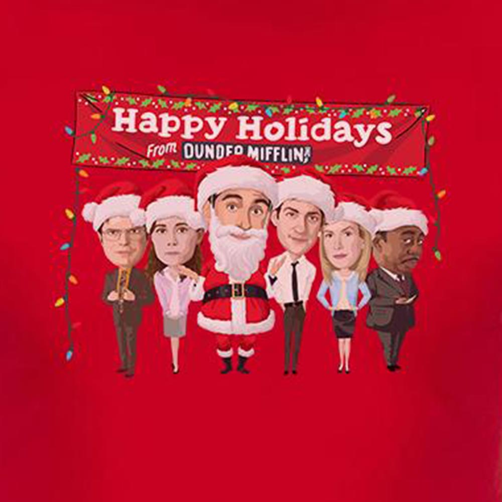 Keep your holiday merry and bright with The Office Dunder Mifflin Happy Holidays Adult Short Sleeve T-Shirt. This shirt is the perfect gift or addition to your personal collection.