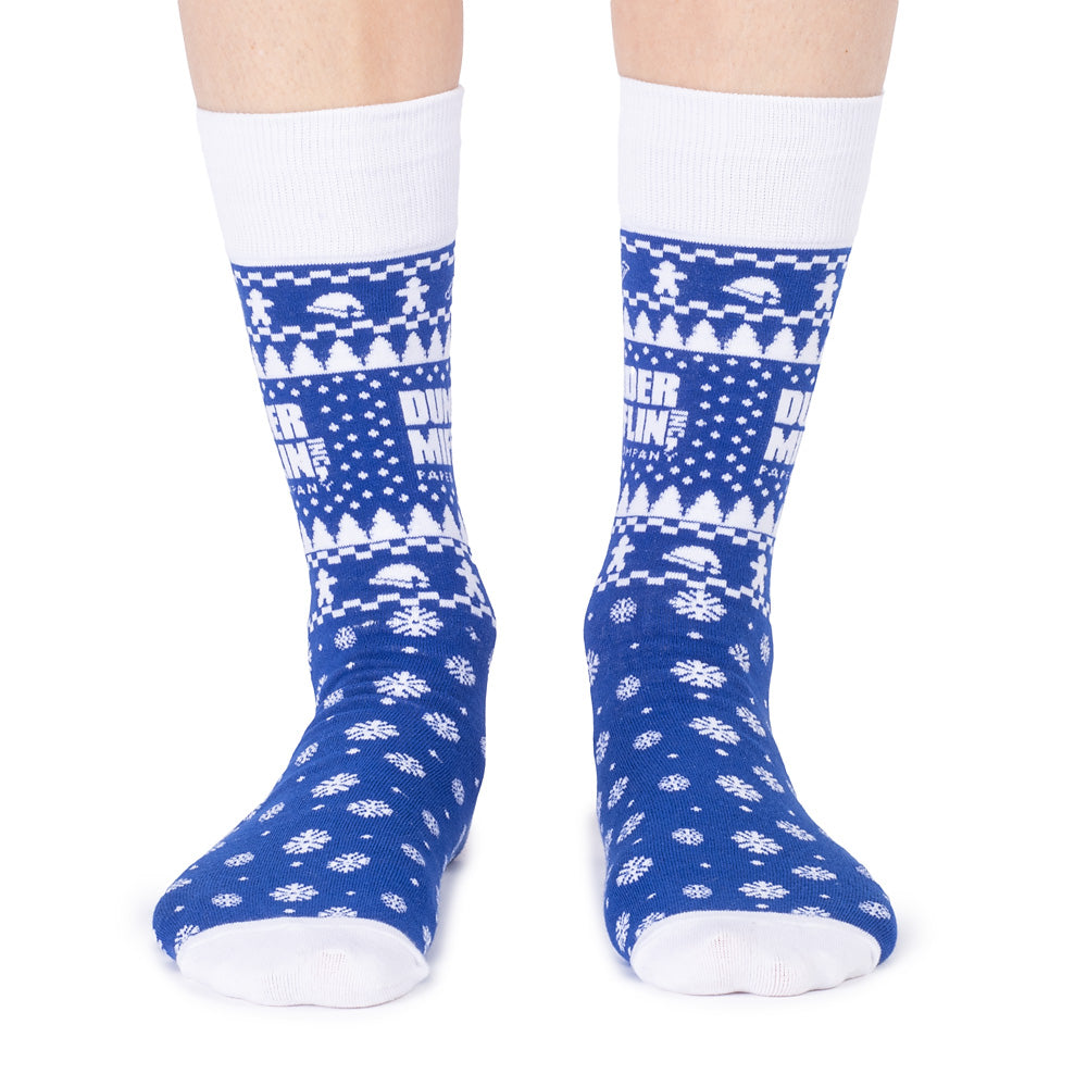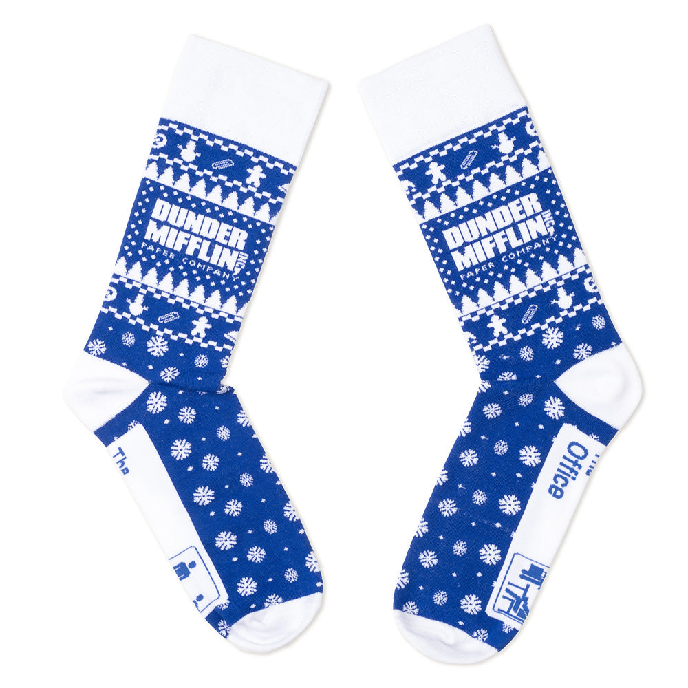 Cozy up or dress to impress with The Office Dunder Mifflin Holiday Socks! Pair them with The Office Dunder Mifflin Holiday Sweatshirt to make the outfit complete. Perfect for showing your love to your favorite Scranton Paper people while looking festive for the holidays.