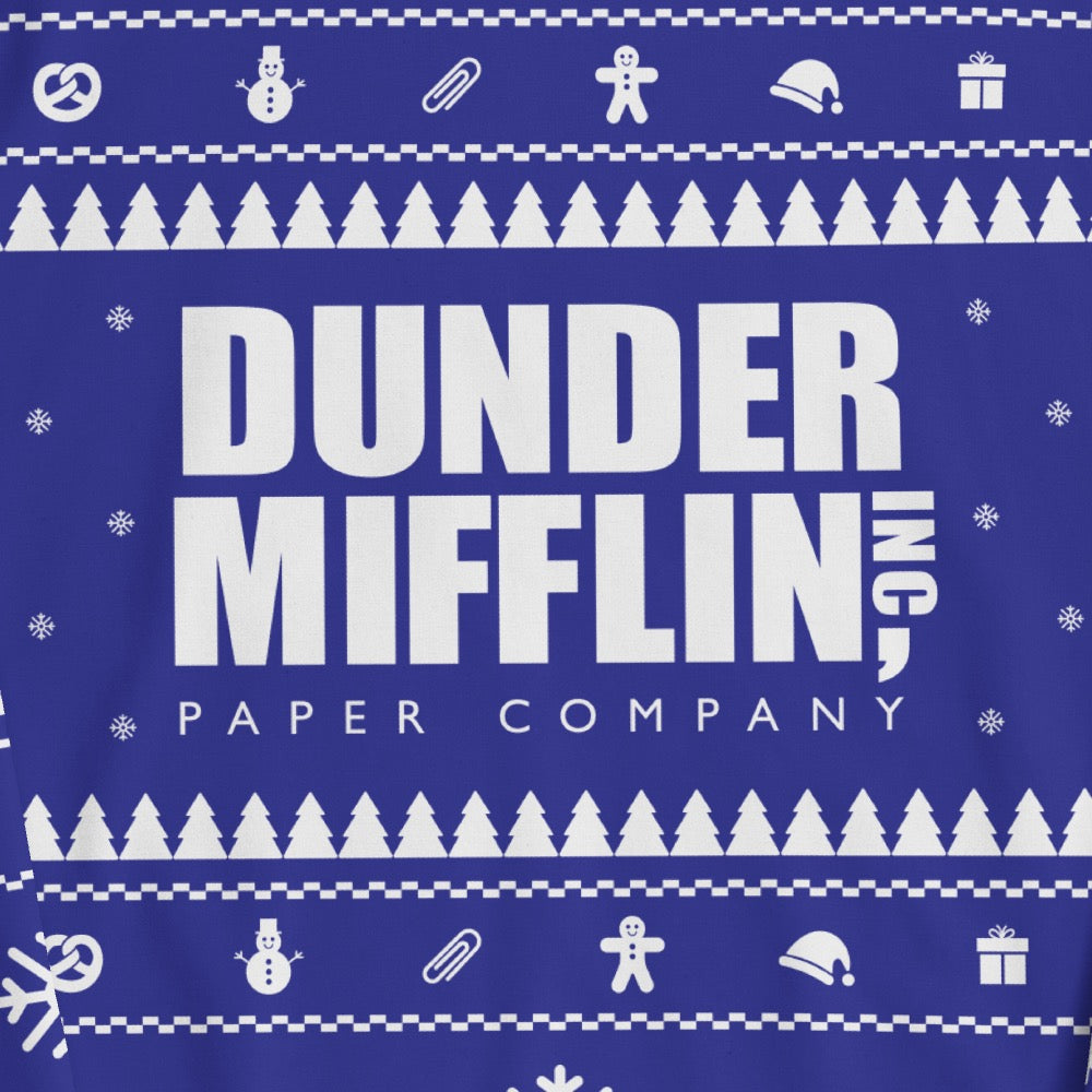 Celebrate the holiday season in style with our Dunder Mifflin Ugly Christmas Sweater. Showcasing the iconic Dunder Mifflin logo in a delightful holiday-themed design, this sweater is the perfect blend of nostalgia and merriment. Crafted with premium materials for comfort and warmth, it's not just an ordinary holiday sweater—it's an homage to your favorite paper company in Scranton.