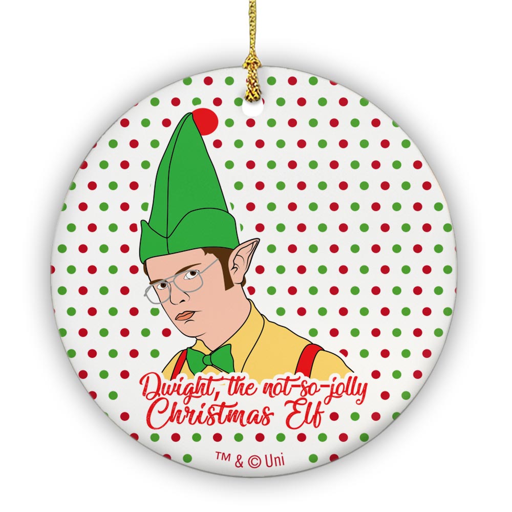 Are you looking for the holliest, jolliest, Dwight-iest gift to give The Office fans this holiday season? Then look no further. Featuring Scranton’s own Dwight the Elf, this The Office Dwight Elf Double-Sided Ornament will make fans of The Office glow brighter than holiday lights when they see what you gifted them!