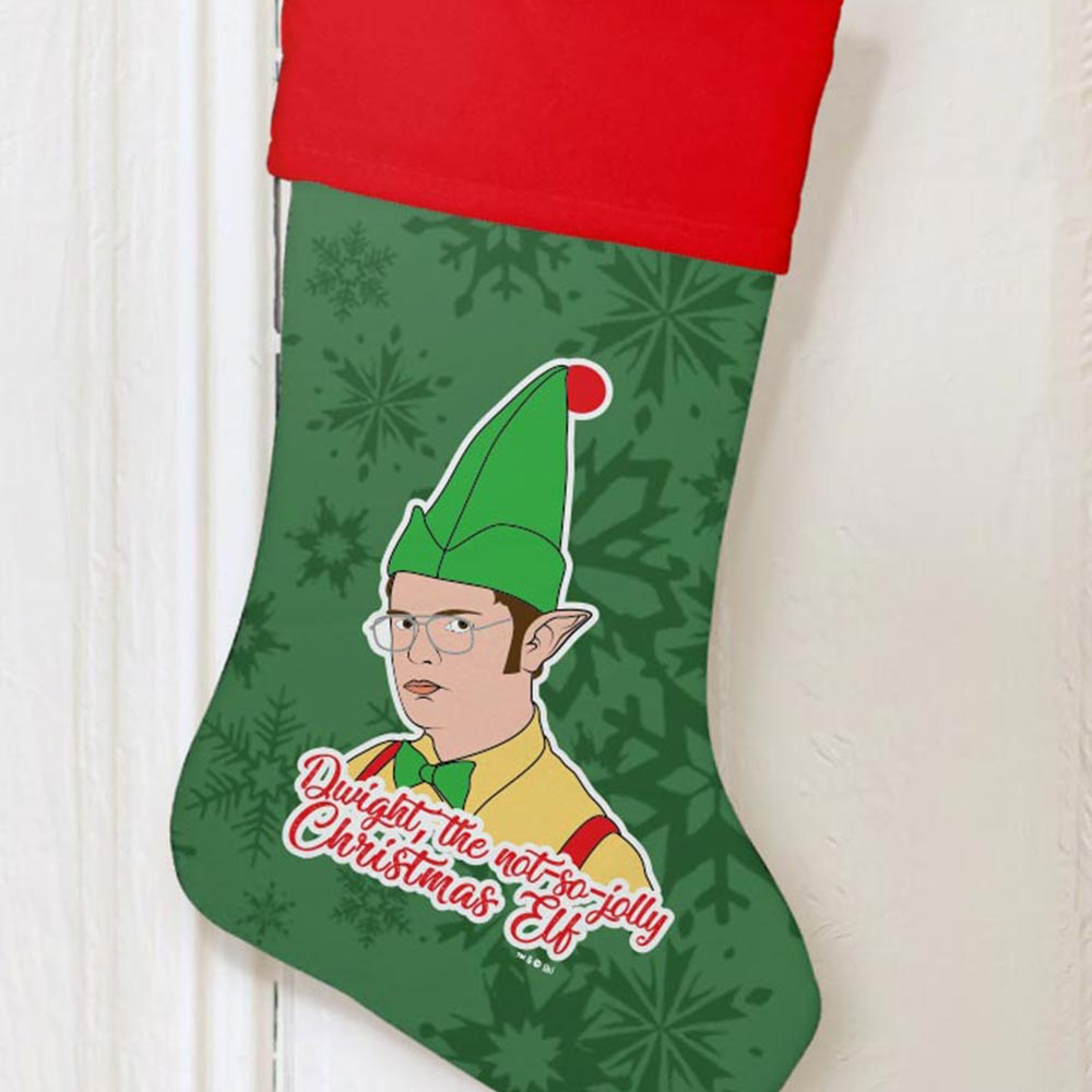 Whether you hang this The Office Dwight Elf Stocking on your fireplace or gift it to the #1 fan of Dwight Schrute, this stocking is sure to make your holiday merry and bright. Featuring a festive, slightly-grouchy Dwight, this elf stocking will make you laugh each time you see it.