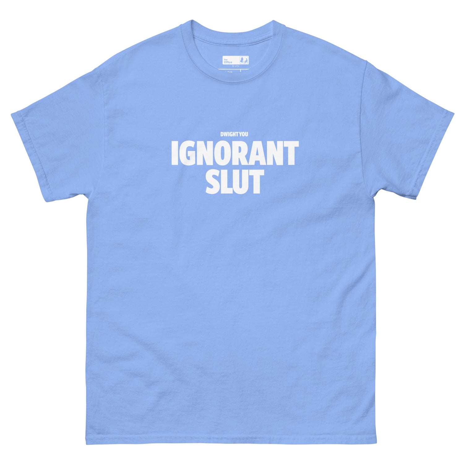Introducing the iconic phrase immortalized by Dwight Schrute – The Office Dwight "You Ignorant Slut" Unisex T-Shirt! This bold and hilarious tee is a must-have for any true fan Dwight's unique sense of humor and memorable quotes.