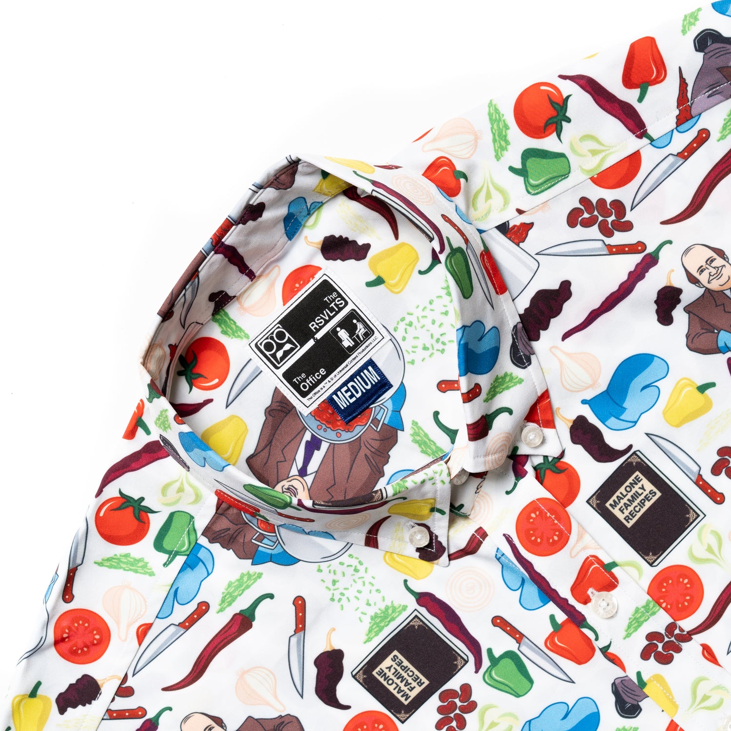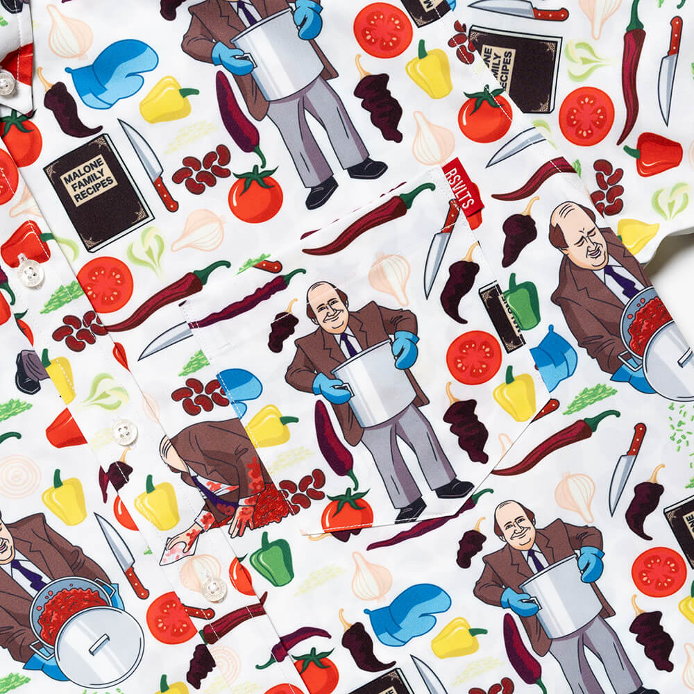 Celebrate a recipe passed down from Malone’s for generations with this vibrant The Office Kevin’s Famous Chili Button-Down Shirt. As rare as Kevin’s chili itself, this limited-edition button-down from The Office x RSVLTS Cult Collection is a necessity for any fan of The Office.