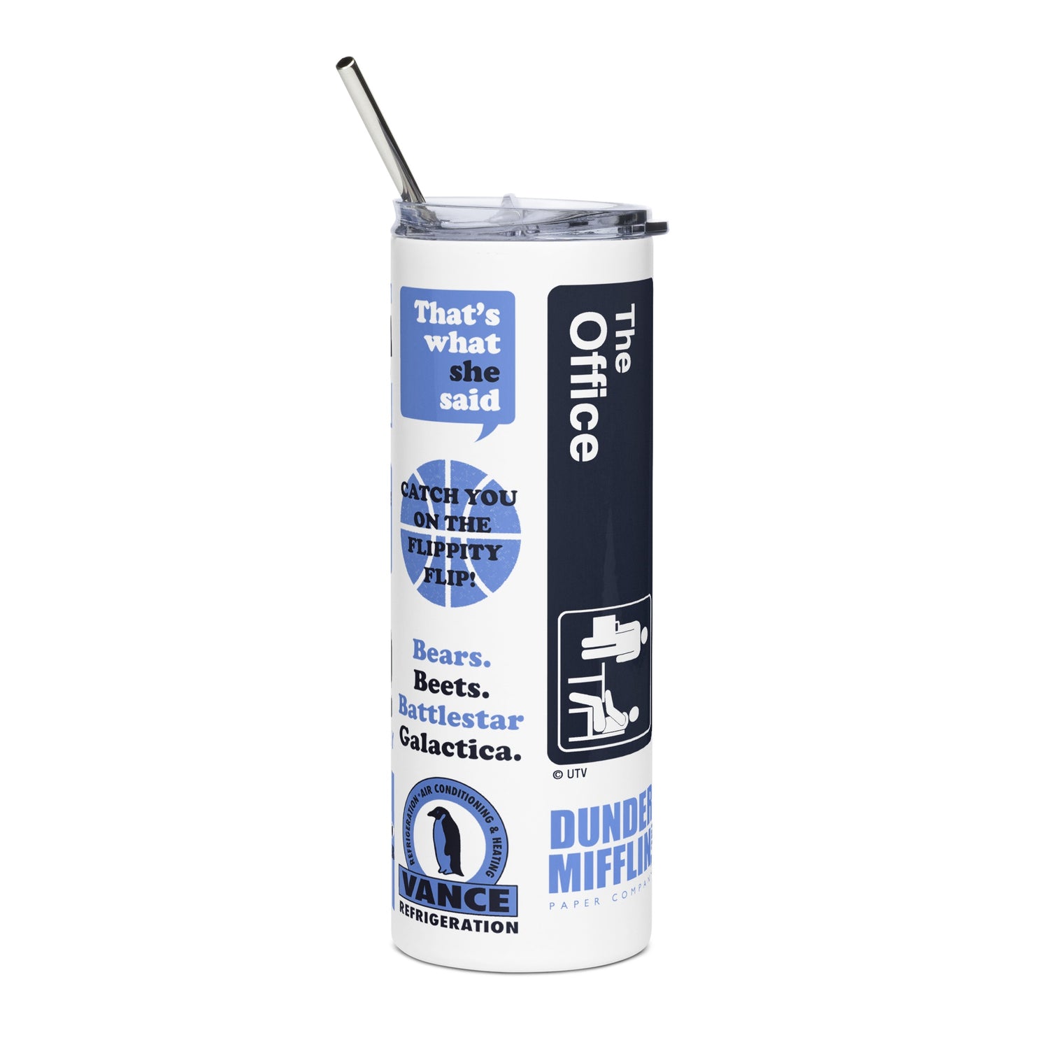 Embrace your inner Dunder Mifflin spirit with our exclusive mashup design featuring iconic quotes, memorable moments, and beloved characters from The Office. With its sleek and durable construction, this tumbler is the ideal choice for your daily commute, office desk, or weekend adventures.