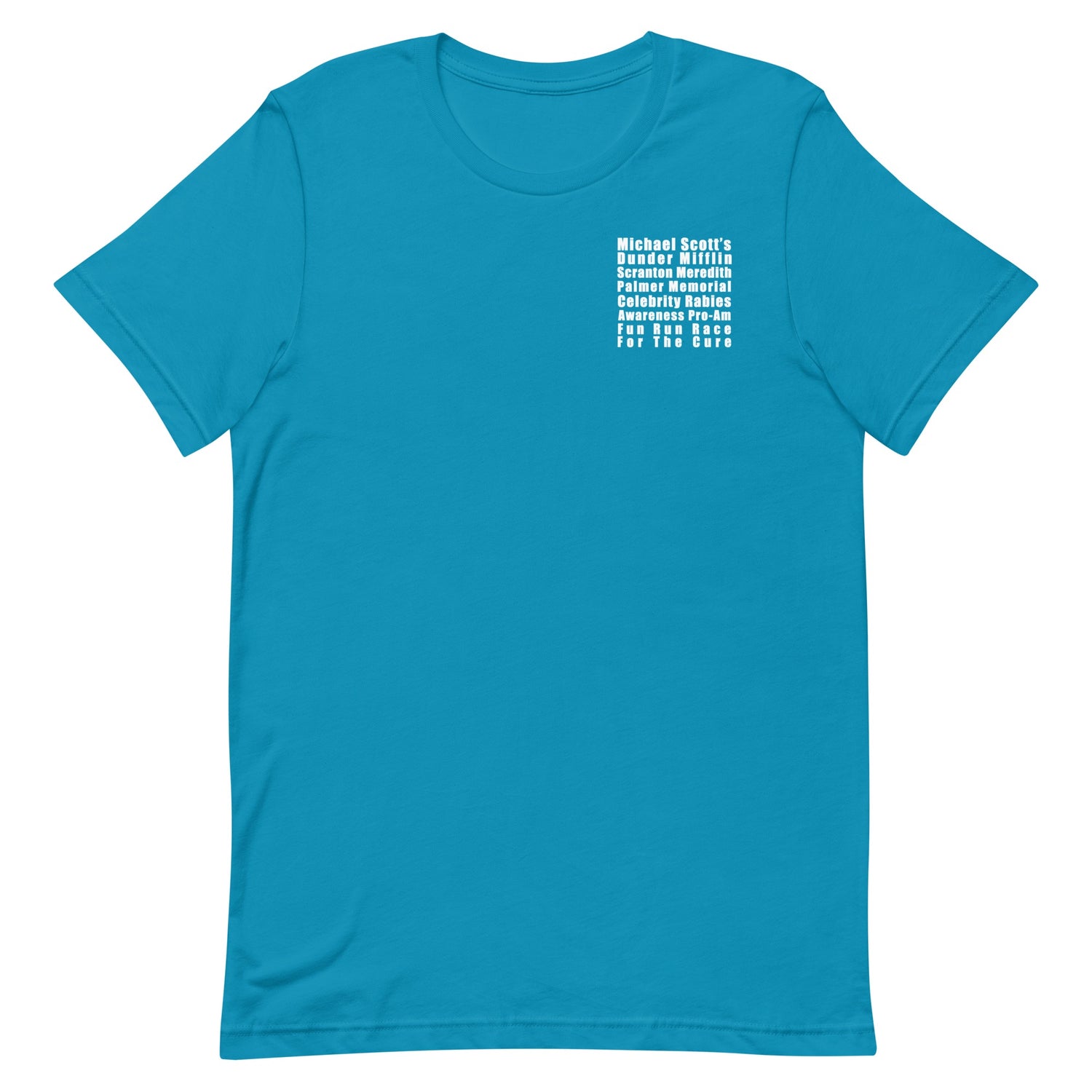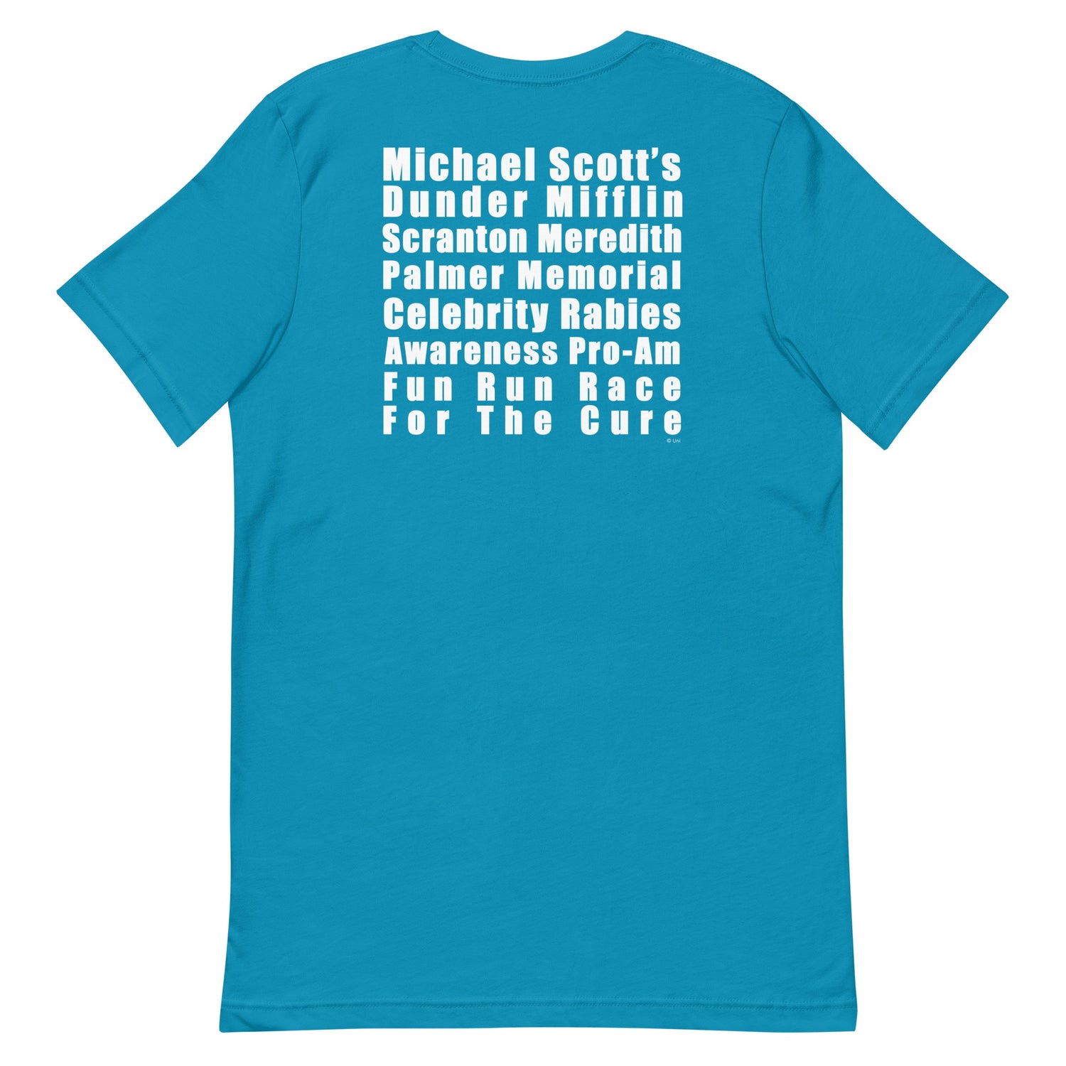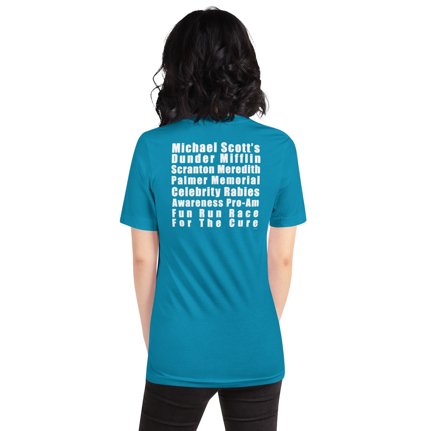 Join Michael Scott in raising awareness of rabies dangers with this Support the Rabid T-shirt. Support this cause and your favorite character by wearing this T-shirt if you cannot enter the Dunder Mifflin Scranton Pro-Am Fun Run. Find a place for this interesting T-shirt in your collection of The Office T-shirts and imagine you're a part of the event that Michael sponsored to support Meredith. Seen on 9/27/07 - Season 4 Episode 1 Fun Run