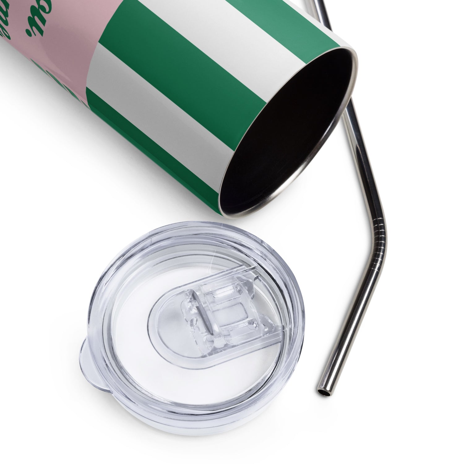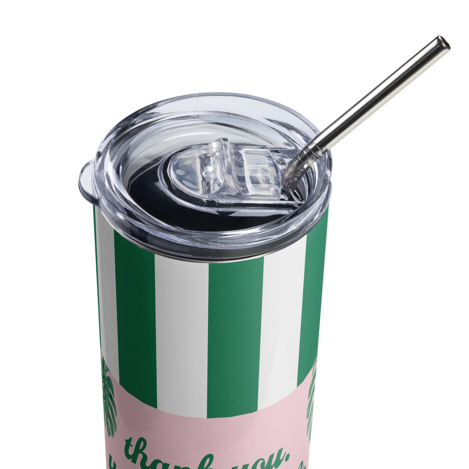 - Straw and lid included with the tumbler