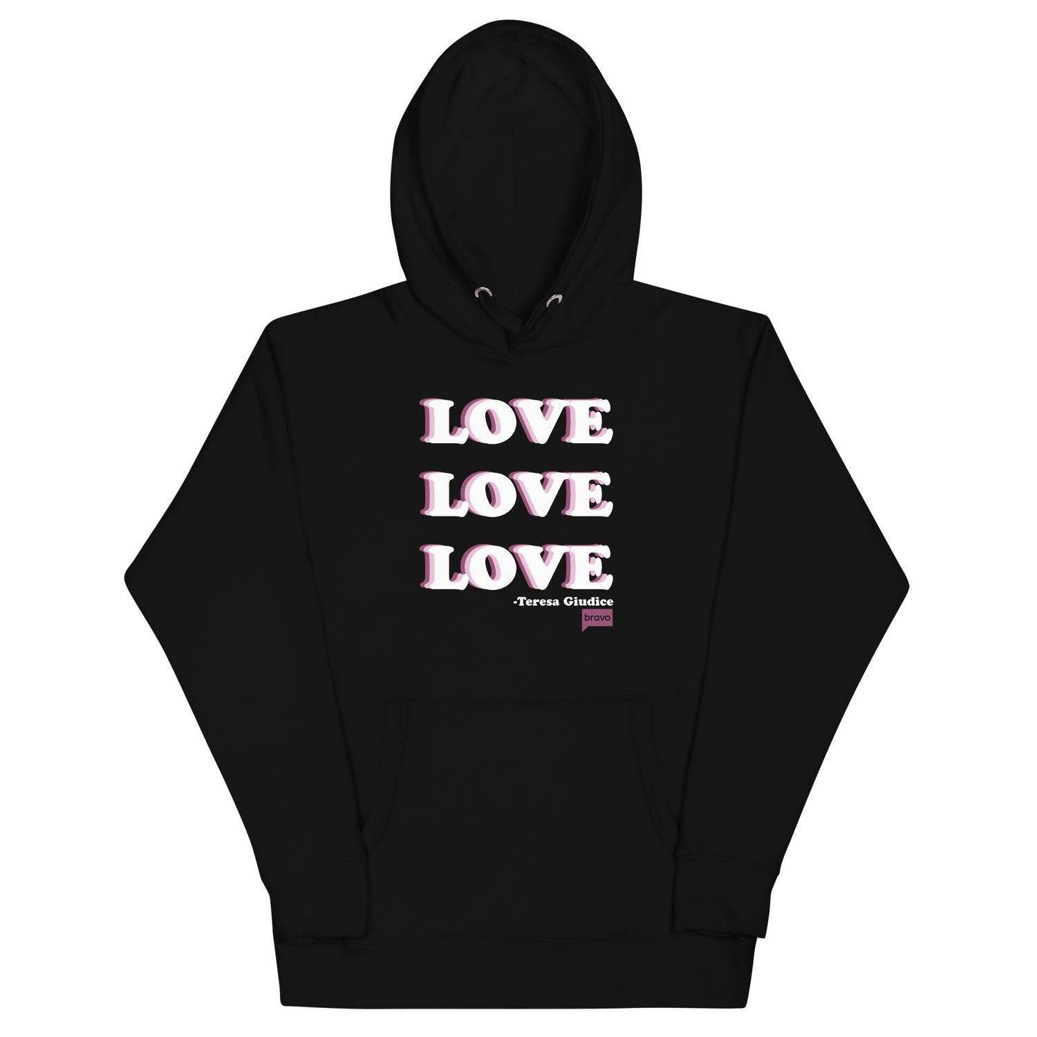 Boasting a comfortable fit and design that adds a pop of color to any style, this Real Housewives of New Jersey Love Hoodie from Bravo will quickly become your favorite sweatshirt. Perfect for chilly days outside or cozy mornings spent watching RHONJ, this hoodie is a staple for any Bravoholic or super fan of Teresa Giudice.