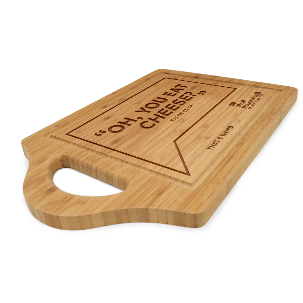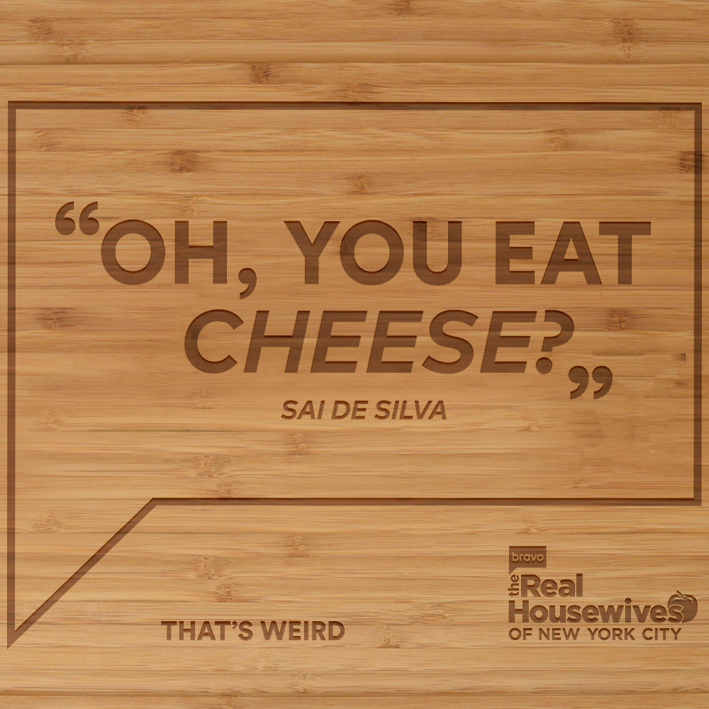 That's Weird. The Cheesegate cheeseboard is a perfect way to add a little sass to any dinner party. Display your love for the new RHONY girls with this exclusive cheese and caring board. Perfect for girls night or staying in and binging on Bravo.