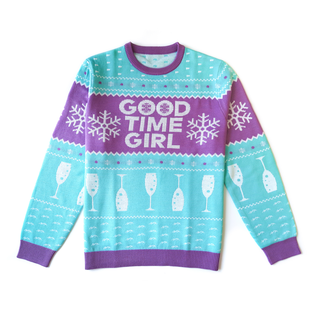 There's snow better way to spend the winter in Salt Lake City than by cozying up in The Real Housewives of Salt Lake City Good Time Girl Holiday Sweater. With a vibrant design, cozy fit, and "Good Time Girl" across the front, this sweater lets fans of The Real Housewives of Salt Lake City show up to their holiday festivities in ultimate style and comfort.