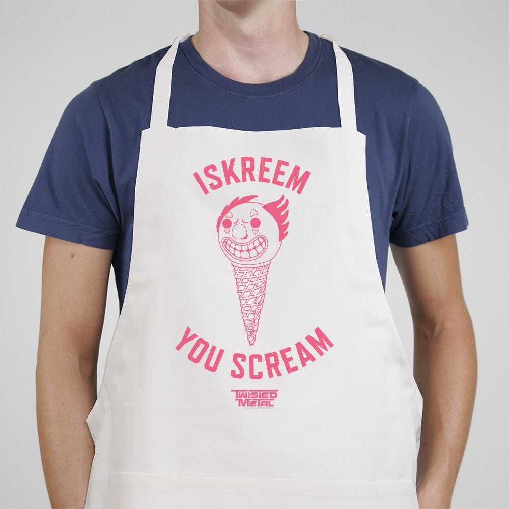 Transform your kitchen into a battleground of flavors with our ISkreem You Scream apron inspired by the action-packed world of Twisted Metal. This apron is more than just kitchen wear; it's a bold statement of your love for culinary chaos.