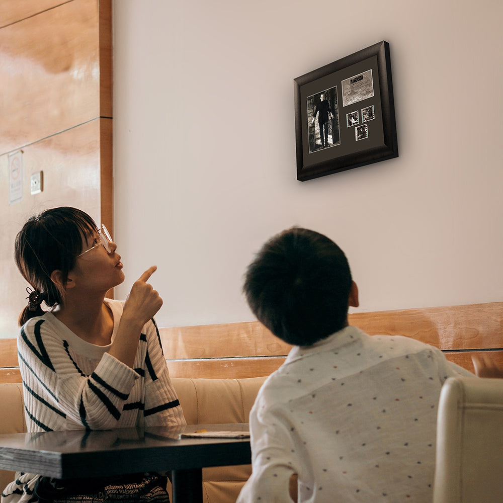 Each FilmCell presentation is made with careful attention to detail. It is double matted, placed in a quality frame, contains an acrylic front and back allowing natural light to enhance the film frames. Each piece of film is hand-cut from reels to provide you with the best possible scenes to offer a unique and varied product. This is all put together to bring you a collectible that looks great in any room. (The film portrayed in the image above is an example of the film cells you may receive.)