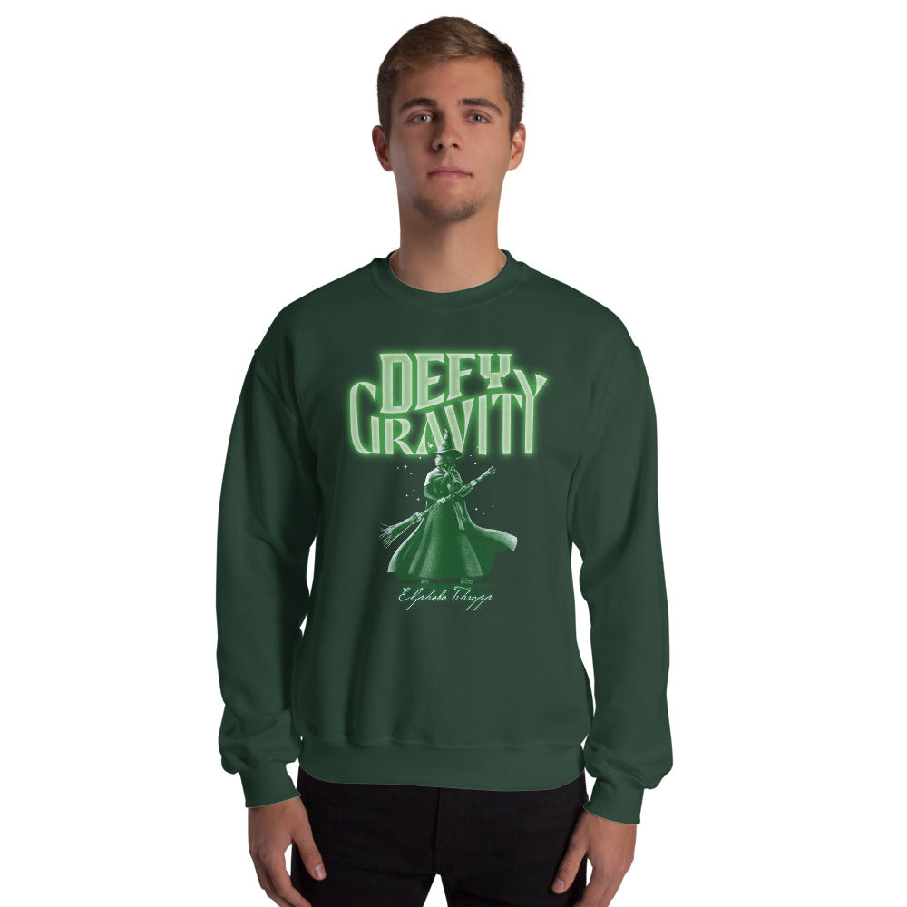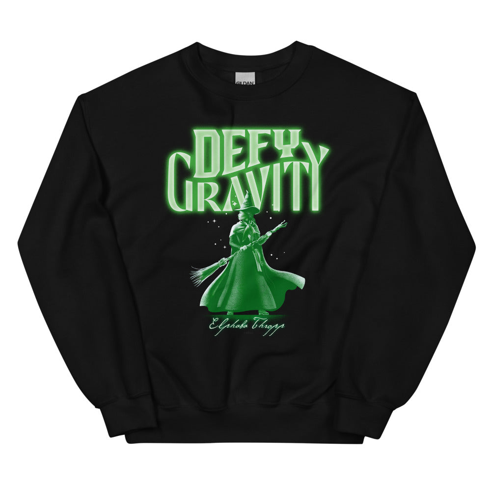 The Wicked Defy Gravity Crewneck Sweatshirt is a must-have for fans of the hit movie of 2024. Made with a soft, high-quality fabric blend, this cozy sweatshirt features the iconic "Defy Gravity" slogan, showcasing your love for the unforgettable soundtrack and empowering scenes.