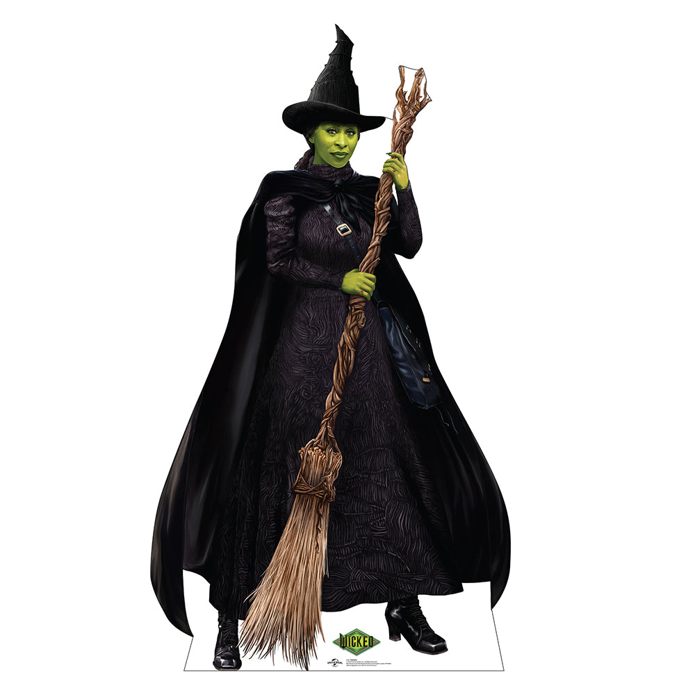 This is a cardboard cutout of Life-size cardboard standee of Elphaba from movie Wicked part 1. Easy to set up, it features a single-sided, high-quality print on cardboard with an easel on the back so that it can stand on its own. Cardboard stand-ups make great decor for parties, photo ops, and events.