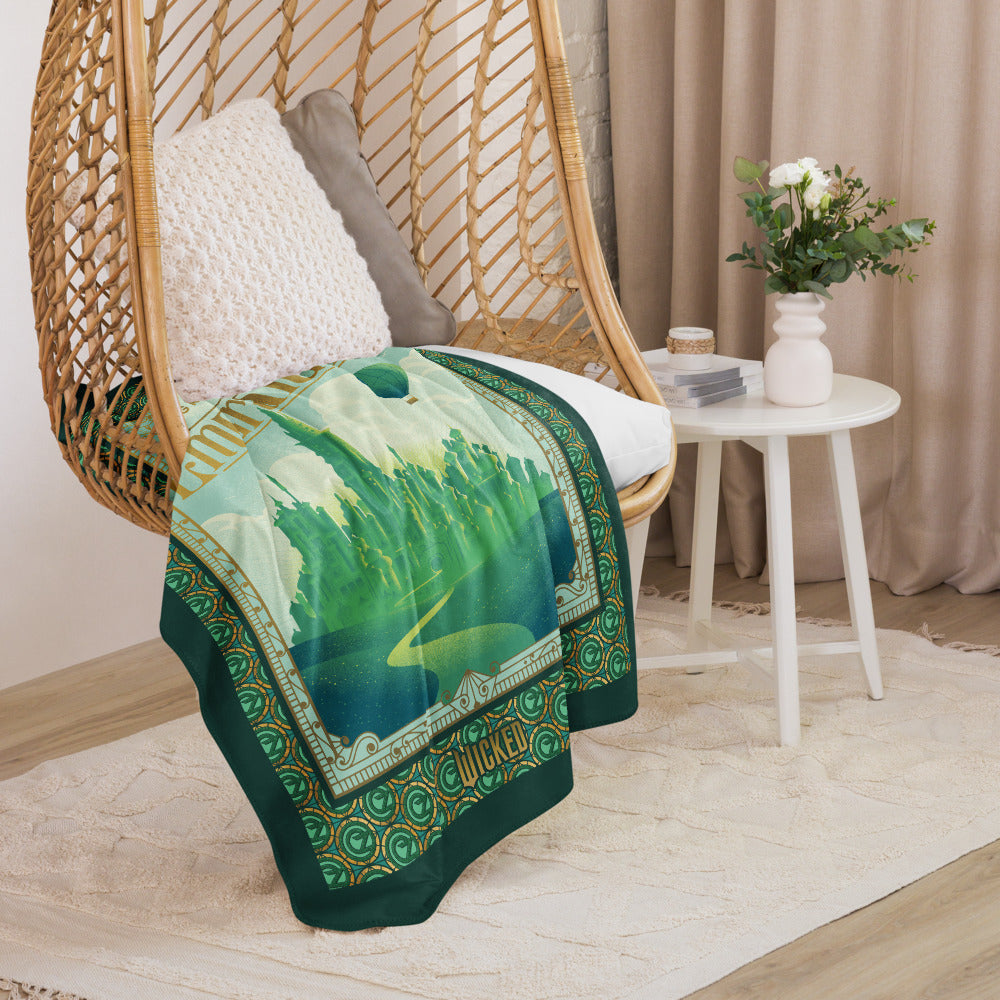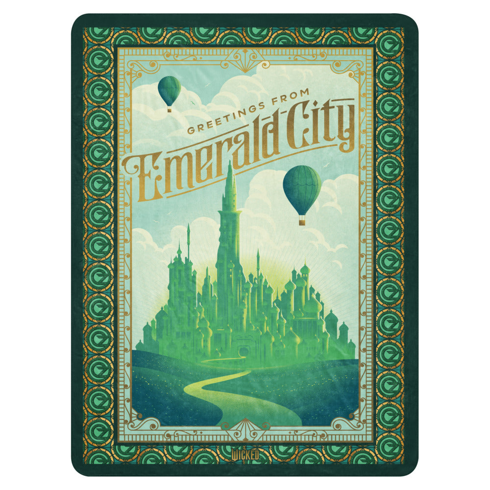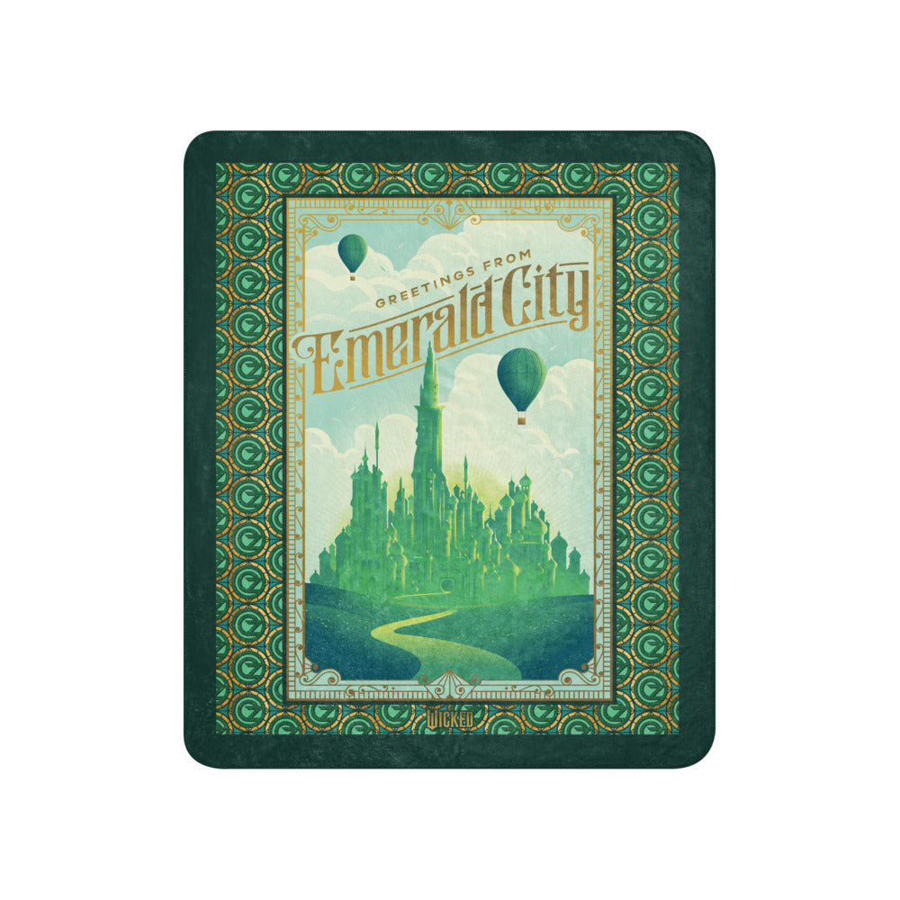 Embrace the magic of the Emerald City with the Wicked Greetings From Emerald City Sherpa Blanket. Inspired by the iconic Wicked movie, this ultra-soft, plush blanket brings the world of Oz right into your home.