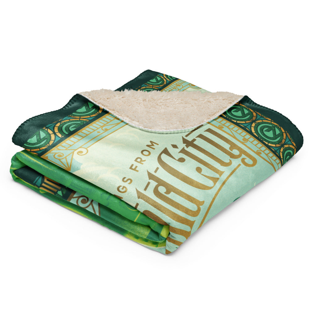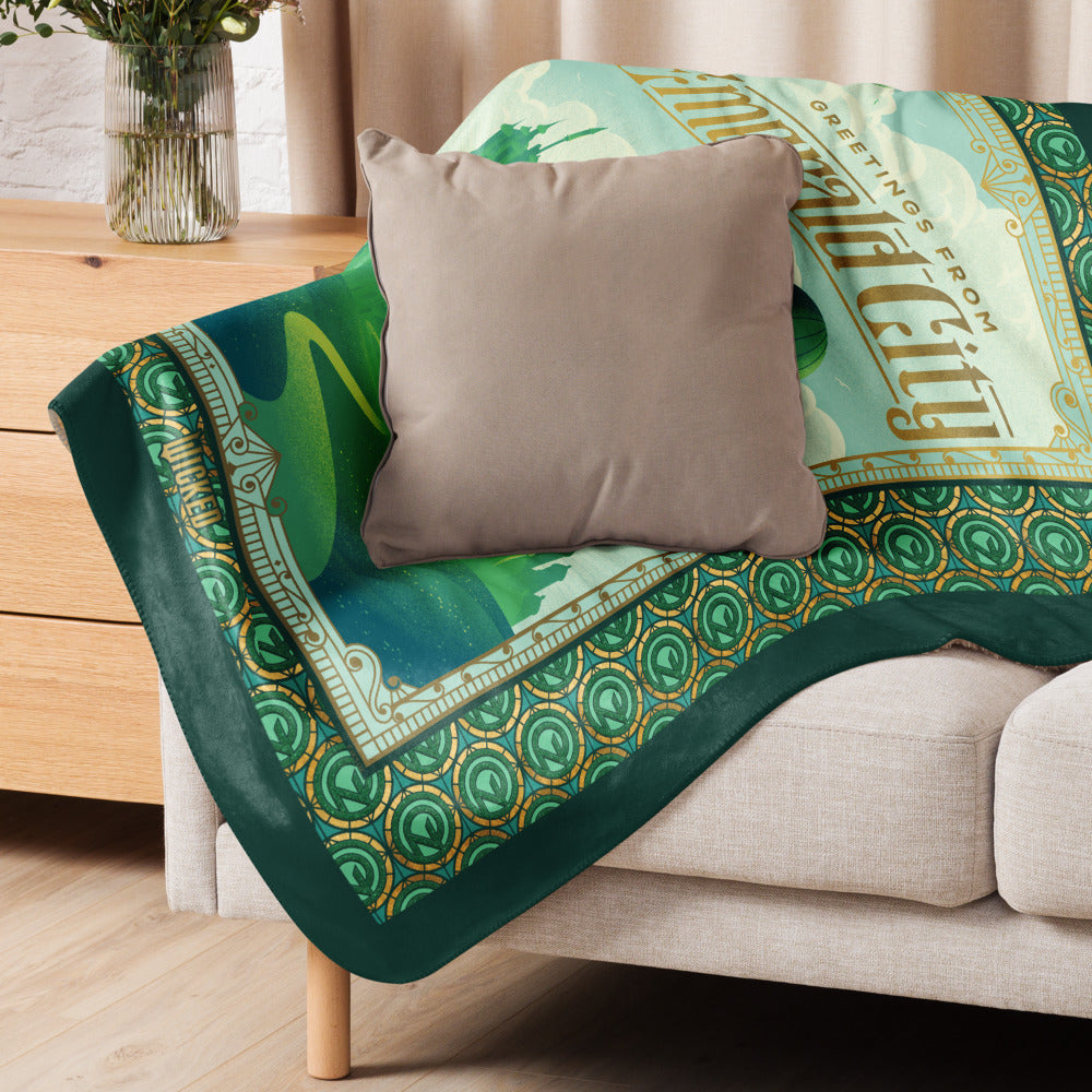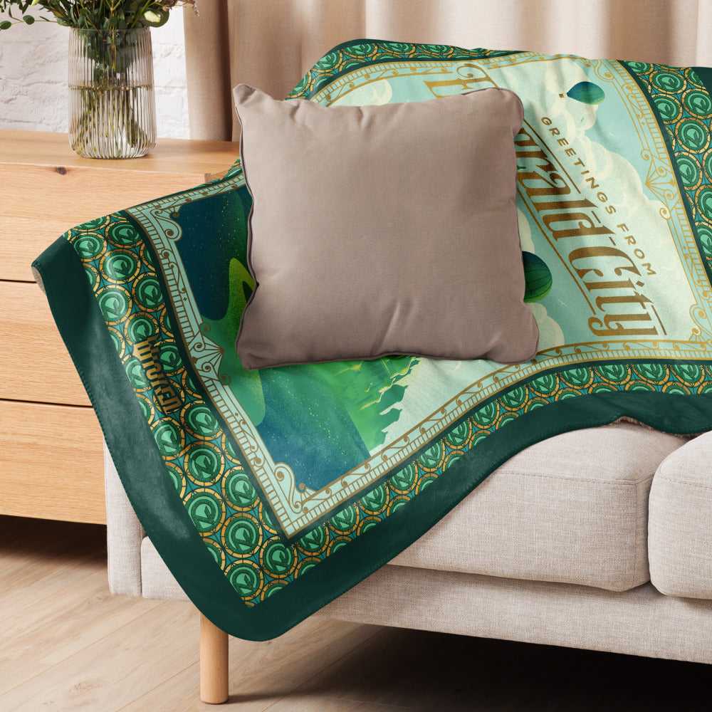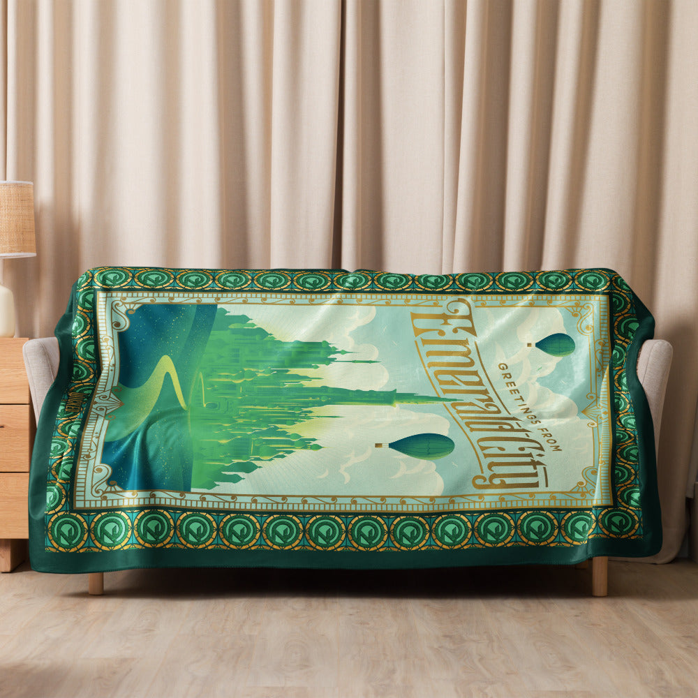 Embrace the magic of the Emerald City with the Wicked Greetings From Emerald City Sherpa Blanket. Inspired by the iconic Wicked movie, this ultra-soft, plush blanket brings the world of Oz right into your home.
