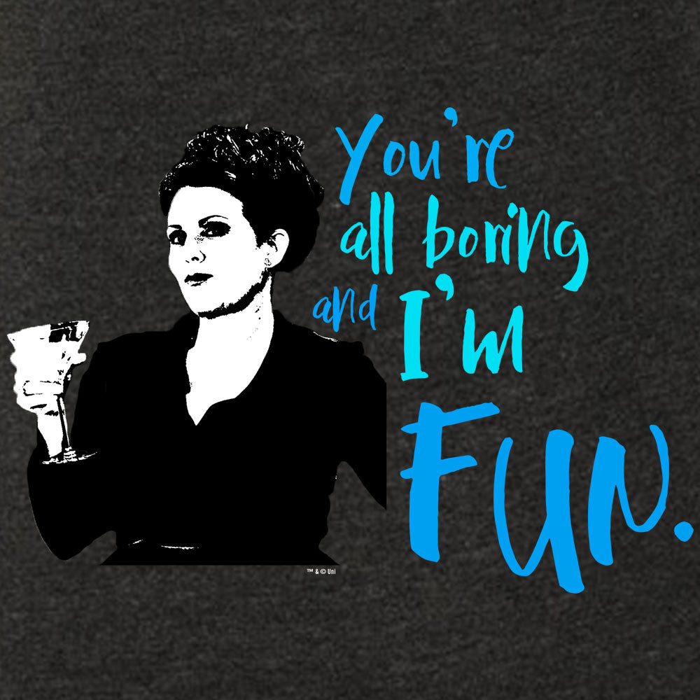 Are you as fun as Karen Walker from Will & Grace? This women's fit tri-blend tee is made of three quality fabrics that make it super soft and comfortable. The tee features Karen and her quote “You’re All Boring and I’m Fun.”